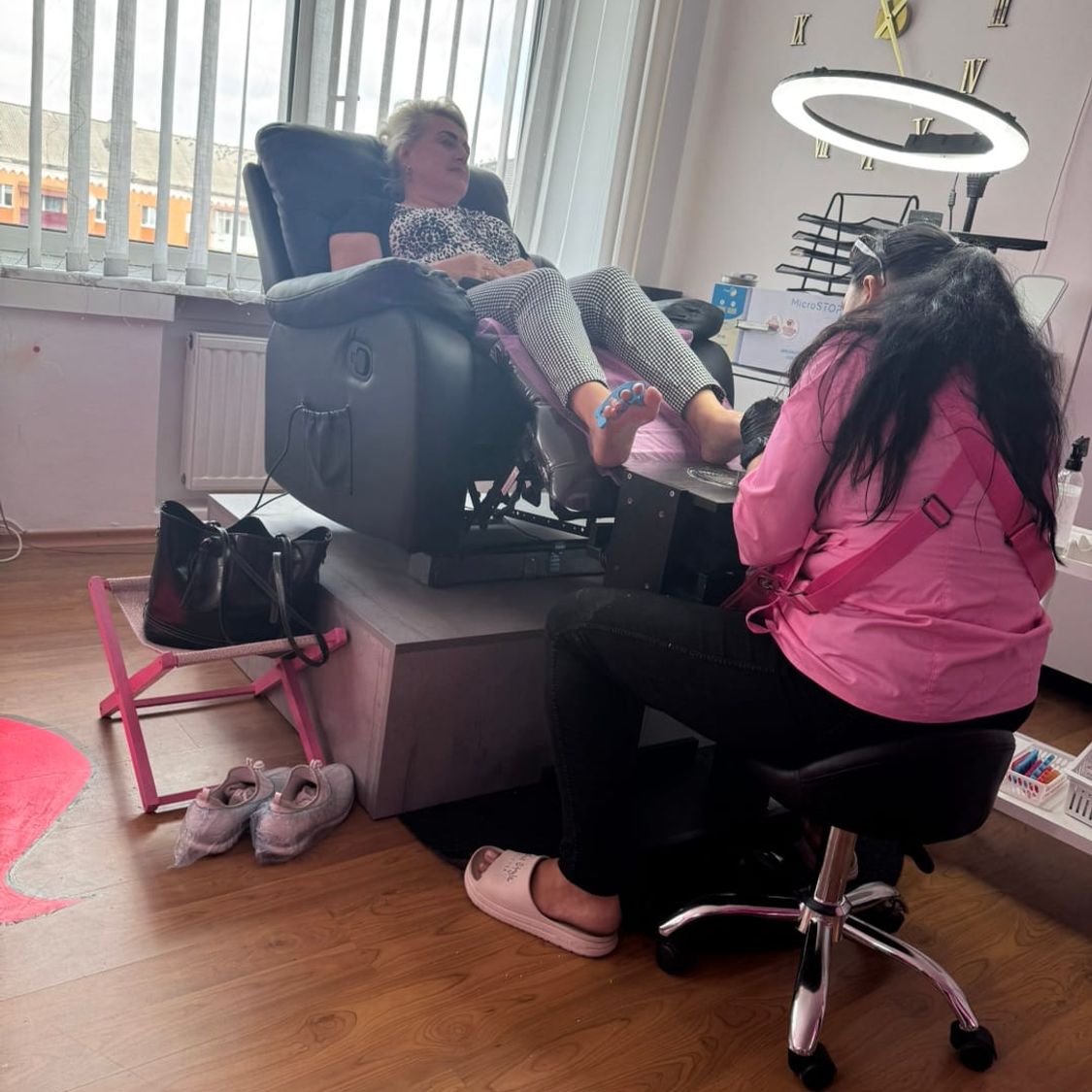Професійна процедура догляду за ногами з використанням апарату для обробки нігтів та стоп. Ідеальна для тих, хто хоче чисті, доглянуті та гладкі стопи без огрубілостей.