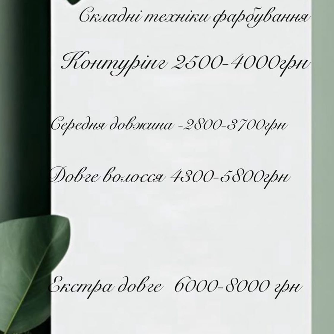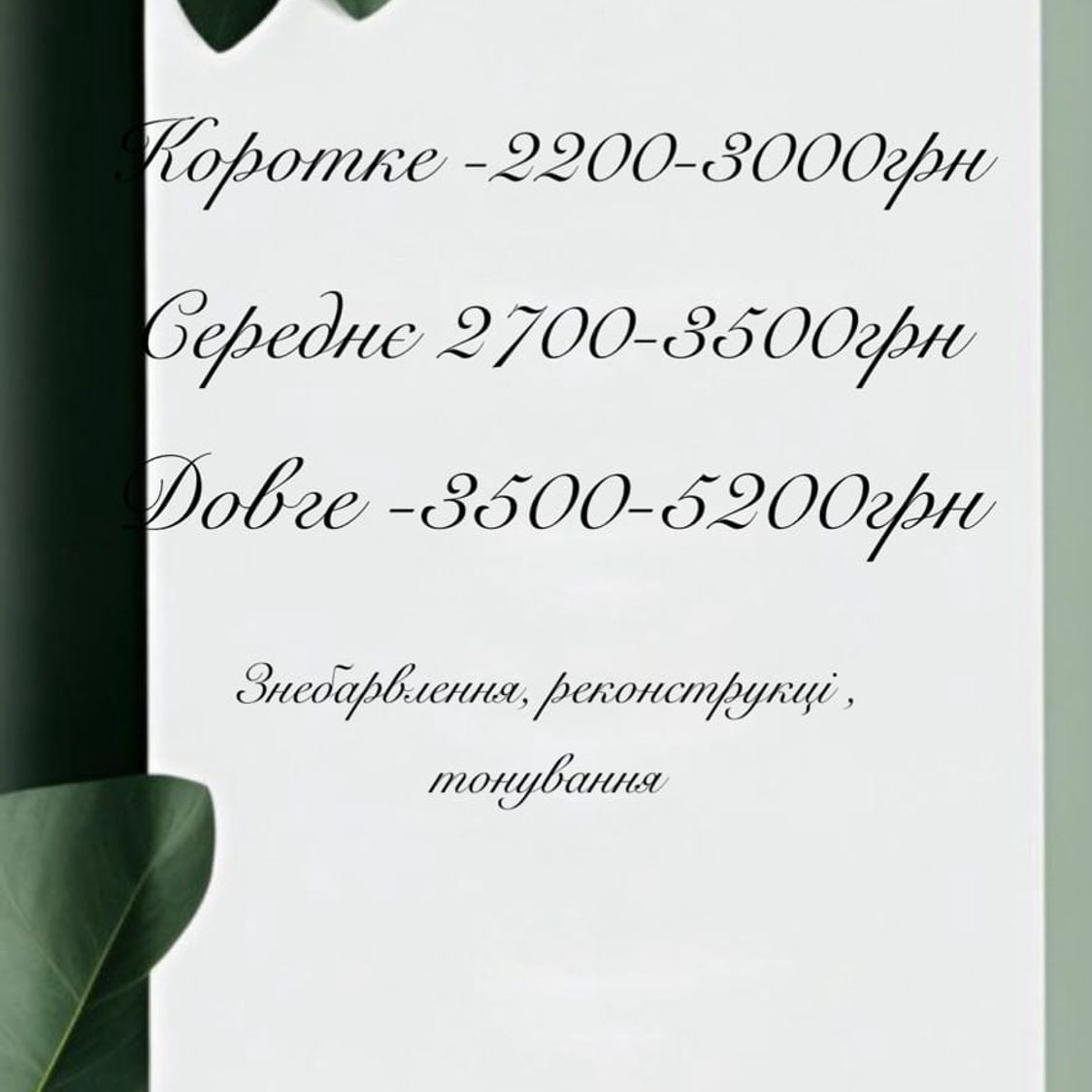 Ціна залежить від довжини волосся