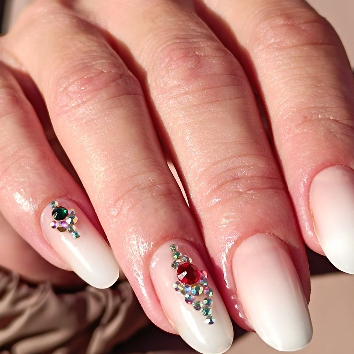 Широкий вибір варіантів декоративного оформлення нігтів, включаючи малюнки, візерунки та стрази
