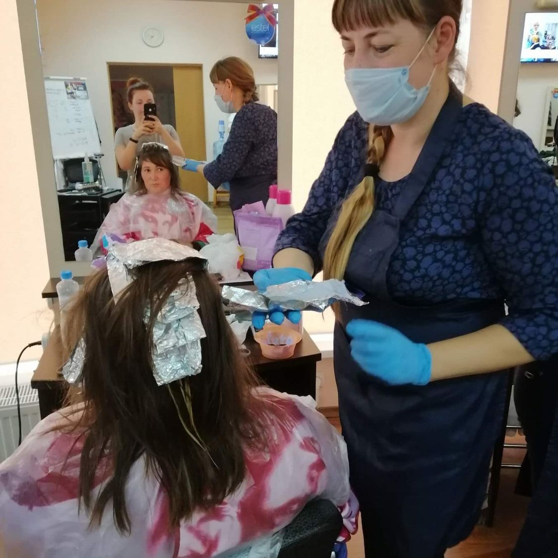 Окрашивание корней волос работа