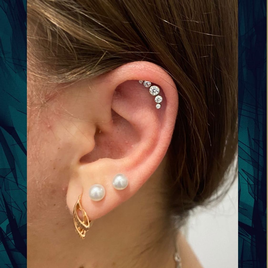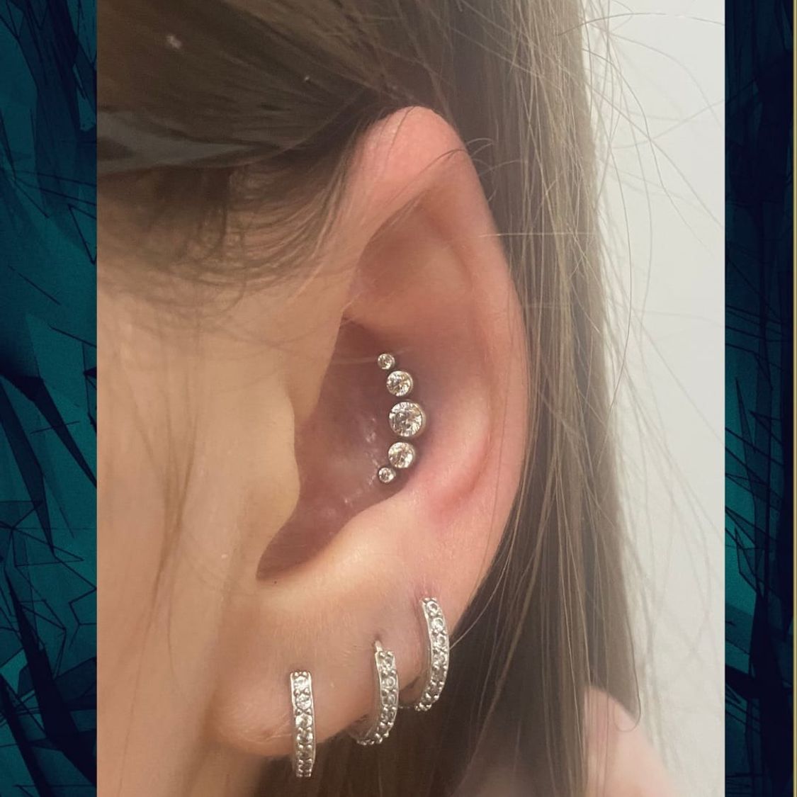 Два і більше проколів мочки (multiple lobe piercing) із титановими прикрасами